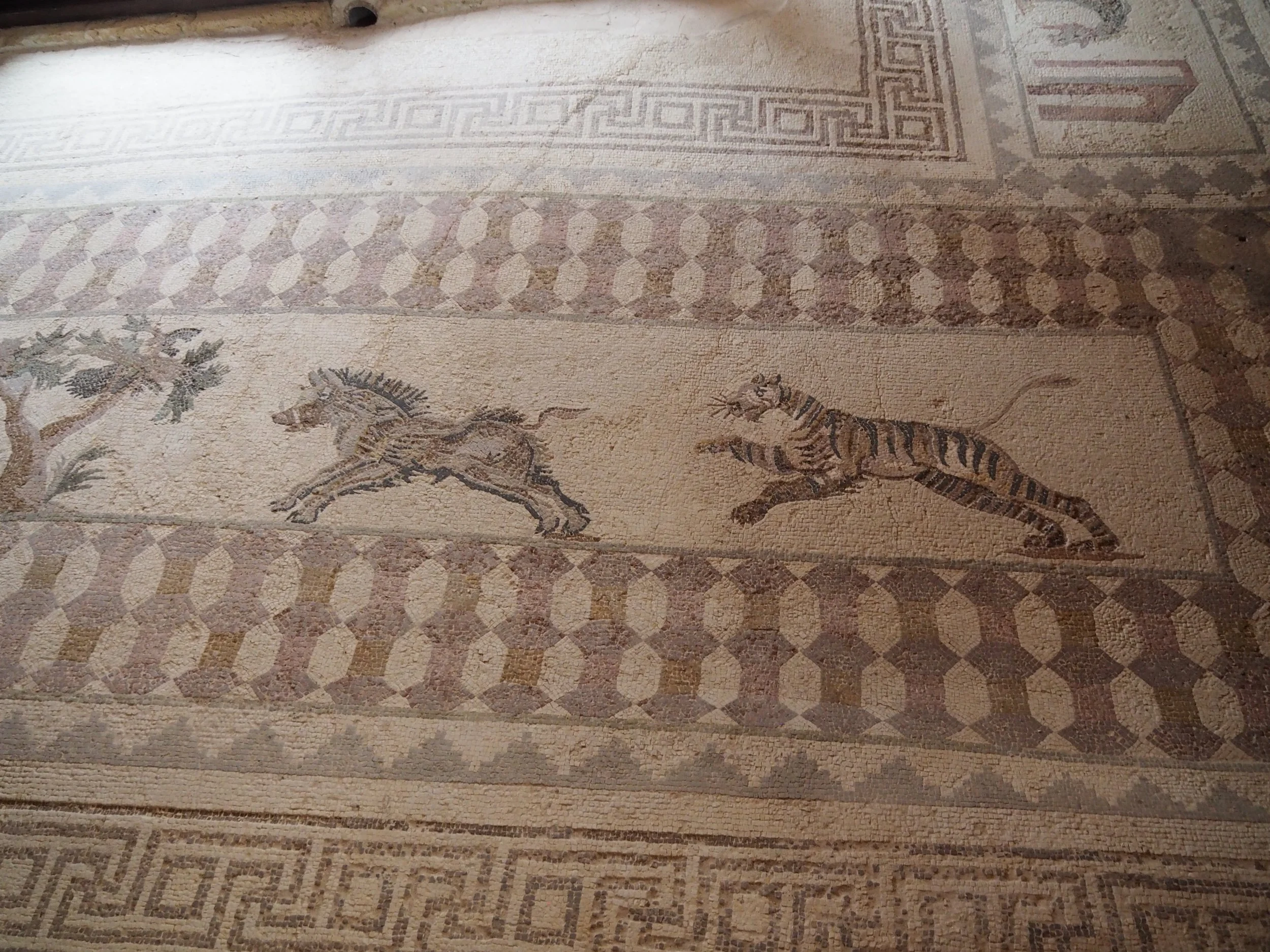 From the earthquake house we proceeded to the end of the site and the House of Achilles (named after some amazing mosaics found there.) That and the House of the Gladiators have more of this really fine, colorful mosaic work that you also see in the House of Eustolios. Really impressive work.